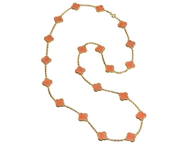 Необычное украшение привлекло внимание знаменитых женщин той эпохи. В 1974 году французская певица Франсуаза Арди на одной из фотосессий появилась в двух коротких и одном длинном колье Alhambra, а знаменитая австрийско-французская актриса Роми Шнайдер снялась в нем в фильме «Взбесившийся барашек» (Le Mouton enragé) Мишеля Деви. Свои экземпляры лаконичных украшений были даже у Грейс Келли. В числе ее фаворитов — золото, кораллы, лазуриты и малахиты, которые монакская княгиня в 70-е годы носила и на публике, и во дворце.