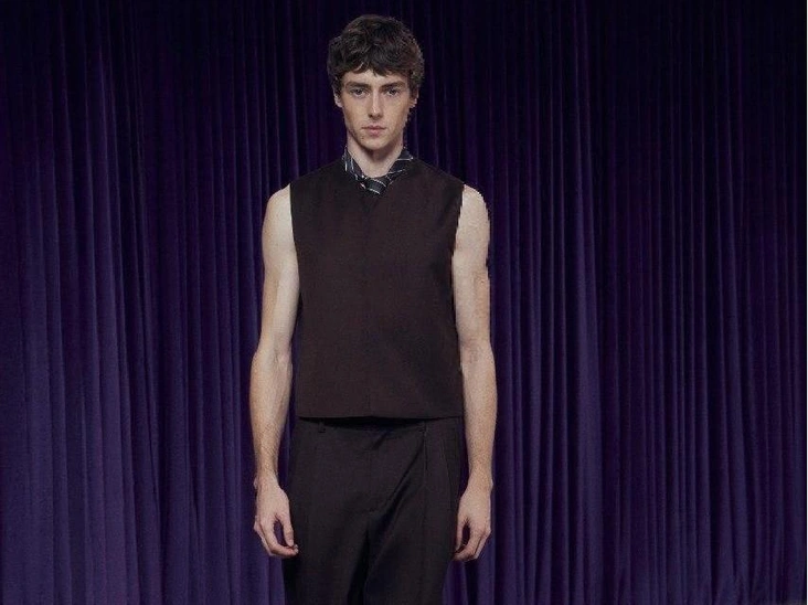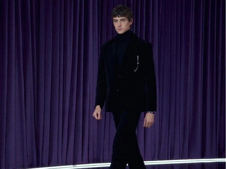 Аксессуары — как штрихи художника: шелковые сумки, клатчи с кристаллами, босоножки на золотистой платформе и брошь-цветок, добавляющая романтический акцент. В мужской линии — уверенная элегантность. Блейзер из хлопкового бархата, костюм-«тройка» в шоколадном оттенке, рубашки с шелковым блеском и галстуком в тон. Завершают образ классические лоферы и ботинки из гладкой кожи.