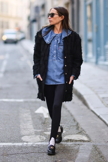 Модели со штрипками удлиняют ноги, особенно если вы носите их с остроносыми туфлями-лодочками, как показывают дизайнеры на подиумах. Если вы выбираете облегающие леггинсы, сочетайте их с удлиненным пиджаком, оверсайз-рубашкой или объемной курткой. А если вам необходима пара, подходящая для вечера, делайте выбор в пользу леггинсов темного цвета и дополняйте их эффектными туфлями-лодочками и блестящим топом.
