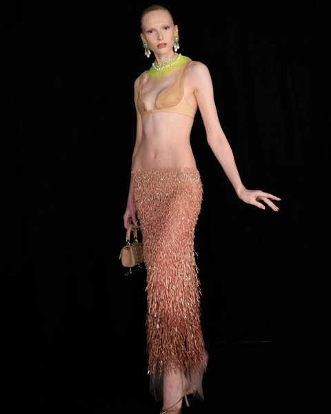 Из стильных приемов подмечаем поднятые воротники рубашек и жакетов, эффектные крупные украшения с большим количеством декора и обилие блеска для повседневной носки. Обращаем внимание на облегающие двойки из юбок на низкой посадке и укороченных топов — вот уже который сезон дизайнеры уверяют нас, что про оверсайз пора позабыть. Пока не стало слишком тепло, успеваем выйти в пушистых приталенных шубах и готовимся носить их же грядущей осенью. А на летних променадах выгуливаем полупрозрачные корсеты, «которых нет», подпоясанные тонким ремешком (читайте также: Главные тренды с Недели моды в Милане — что мы будем носить осенью и зимой 2026 года).
