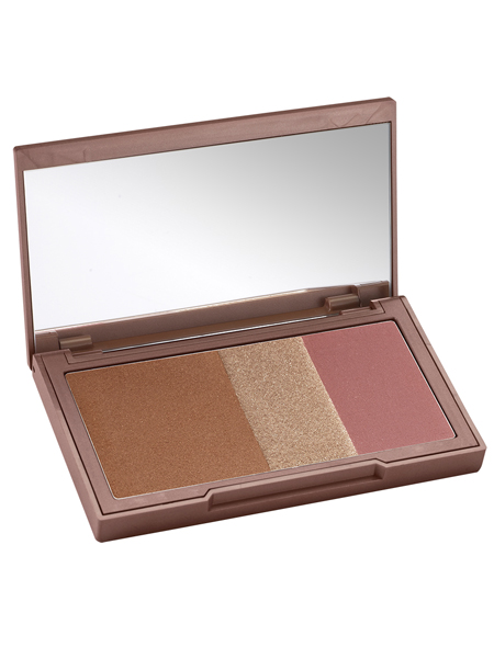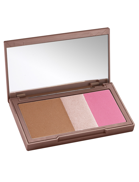 В одном симпатичном футляре уютно соседствуют три незаменимые вещи для создания идеальной кожи: бронзер, хайлайтер и румяна. Наносить их можно по отдельности, используя от случая к случаю что-то одно, или же по всем правилам скульптурирования, в любом случае, это трио спасет вас не раз, то нарисовав легкий здоровый загар, то скрыв синяки под глазами. На выбор четыре сочетания: светло-розовые, розовые, коралловые и лиловые оттенки.