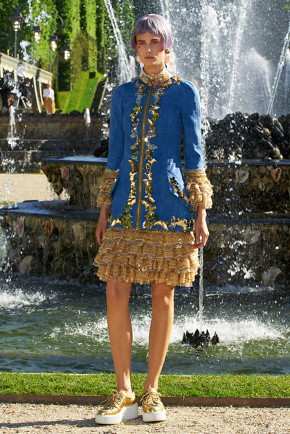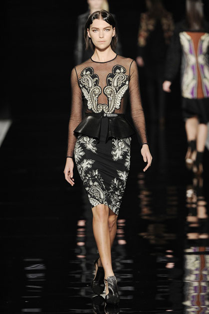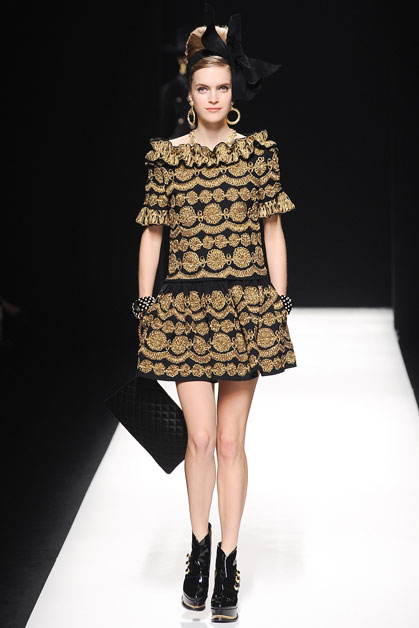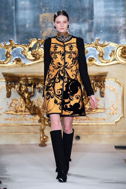 Осенний показ Dolce & Gabbana напоминал премьеру какой-нибудь «Розалинды» в «Ла Скала» и по количеству позолоты соперничал с отремонтированным Большим. Показанная в Версале круизная коллекция Chanel с кринолинами и кружевами вызвала в памяти образы его венценосных обитателей: «короля-солнца», Марии-Антуанетты и, конечно же, мадам де Помпадур. Расшитые, как драгоценные шкатулки, платья, жакеты и брюки Balmain, бархатные платья и пальто с принтом в виде золотых крестов с рубинами и сапфирами у Versace, девушки в напудренных париках на кутюрном показе русского дизайнера Ульяны Сергиенко, наряды из венецианского бархата в коллекции Roberto Cavalli, сияющие разноцветными камнями украшения Lanvin… Барочная роскошь — театральная, избыточная и, на первый взгляд, совершенно далекая от жизни, этой осенью выбилась чуть ли не в главный модный тренд. Кстати, само это слово — «барокко» — в переводе с итальянского означает «порочный», «распущенный», «склонный к излишествам». И это именно в тот момент, когда мы уже почти смирились с перспективой как минимум десять ближайших лет прожить без намека на «излишества» и приготовились запасаться спокойными базовыми вещами, которые можно будет носить не один сезон.