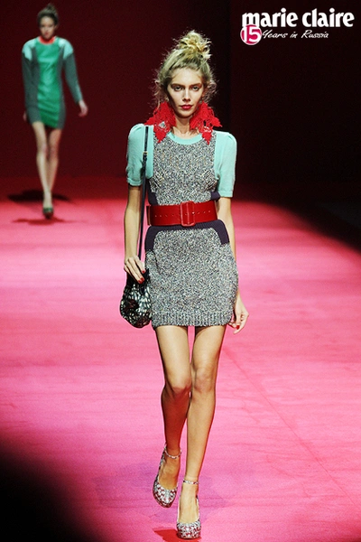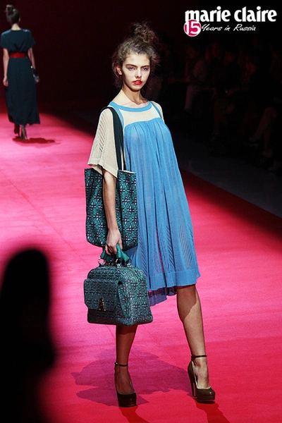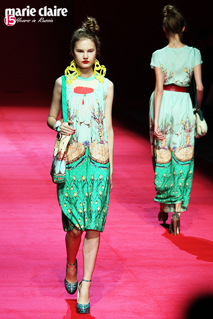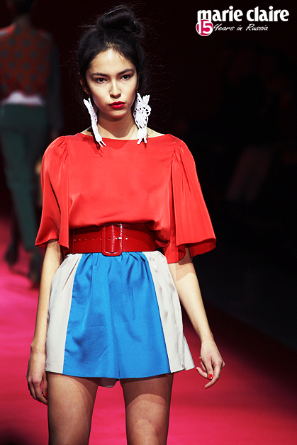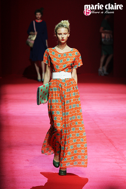 Сарафаны а-ля рус, платья-рубашки, сочные алые туфли-башмачки, массивные узорчатые серьги, изумрудные блоки с геометрическим принтом, вязаные крючком детали – Алена вновь перечитывает народные сказки. AnnaRusska встретилась с дизайнером после показа летней коллекции 2013.