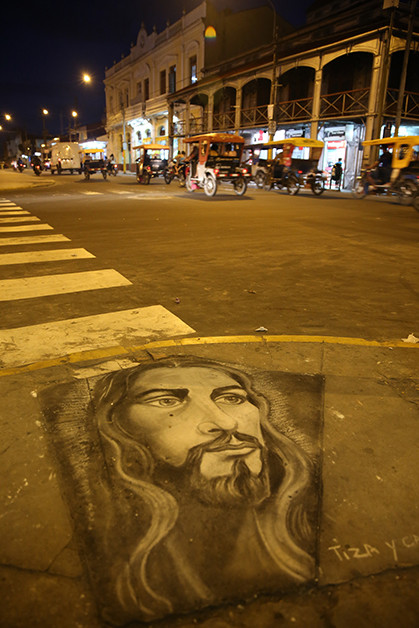 До испанцев индейцы не знали колеса, города были соединены каменными дорогами, по которым эстафетным образом бегали гонцы. Теперь это национальный образ жизни – вечером по набережной-обрыву вдоль Тихого океана вообще никто не передвигается пешком. Все в кроссовках, никто не курит – по всей стране вообще нигде и никто, хотя сигареты продаются свободно. И пьяных нет, но это понятно почему – их виноградного самогона писко много не выпьешь, даже с лаймовым соком (главный перуанский коктейль pisco sour делается так: взбить в блендере 1 часть лаймового сока c 2 ст. л. тростникового сахара, добавить 2,5 части писко и белок 1 яйца, взбивать до образования пены, добавить ледяную крошку и опять взбить, перелить в стакан и капнуть туда ангостуры). Центр Лимы – это испанские соборы с избыточно нарядными святыми, потрепанные разноцветные домики с колониальными зарешеченными балкончиками и таящими в себе настоящую жизнь двориками-колодцами.