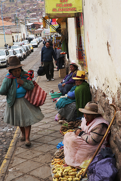 Осторожно, вы вступаете на территорию морских свинок! В кафедральном соборе – очередная «Тайная вечеря» с «куем» (так инки называют свое съедобное животное) на блюде; на рынке тушки выложены штабелями, там же за общим столом их едят в тушеном виде, а на задворках рынка огромную сумку живого товара готовят к продаже. Туристов мало, а у тех, что есть, вид людей с гарвардским образованием, так что они не портят впечатления от женщин с соединенными внизу резинкой черными тугими косами, в шляпах, в широких юбках и с гуанако на поводке.