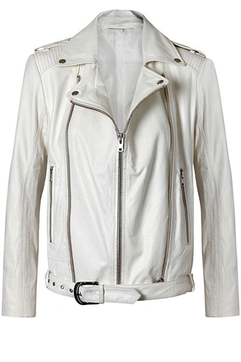 Обожаю кожаные куртки. Эту белую из коллекции Mango буду носить с легким шифоновым платьем.
