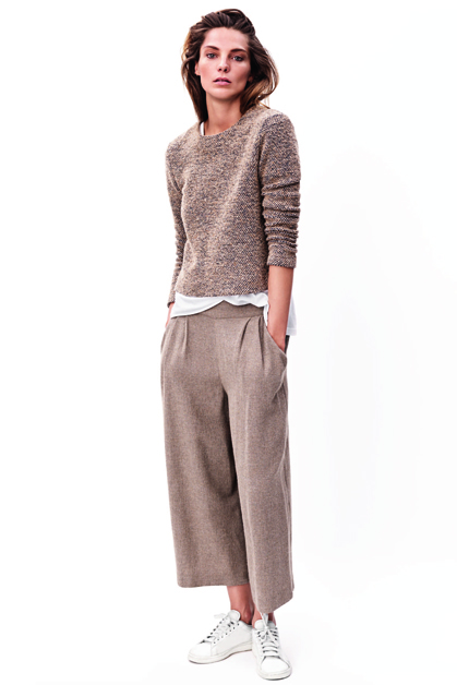 Коллекция представлена двубортными костюмами, платьями в стиле 70-х, теплыми трикотажными пуловерами, шерстяными брюками, парками, дубленками и другими вещами необходимыми для теплой осени и зимы. Выполнена линия в приятных цветах: бежевом, горчичном, бордовом, оранжевом, изумрудном.