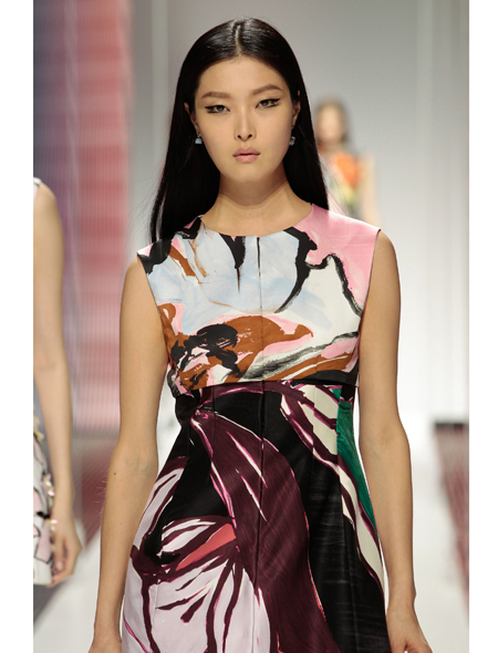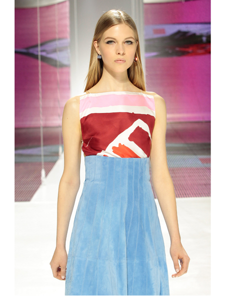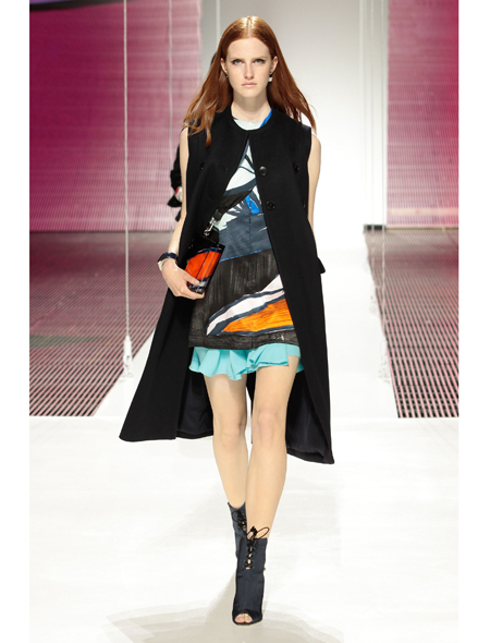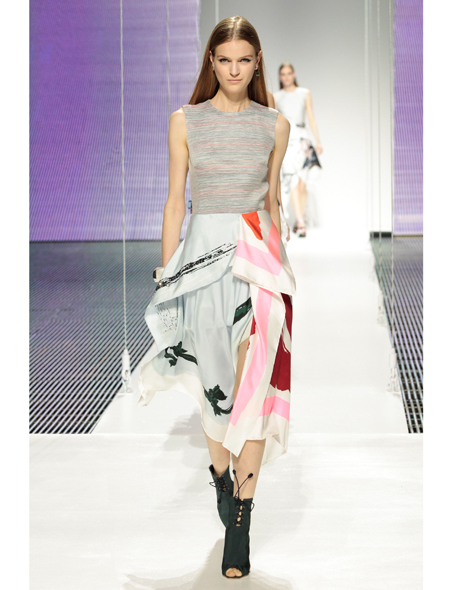 Главным мотивом показа стали классические шелковые шарфы, le carre, как говорят в Париже: из этих пестрых квадратов будто бы были сделаны многослойные, геометричные юбки и топы. Но платок, довольно буржуазный, в общем-то, предмет, здесь представлен иначе, он развевается и воплощает собой своеобразное знамя свободы. Свобода – еще одно ключевое слово для этой коллекции. Знаковые для Dior плиссировки и драпировки тоже вышли за рамки привычного представления и стали свободными и невесомыми. Было даже почти полностью прозрачное платье, наверняка понравившееся Рианне, сидевшей в первом ряду.