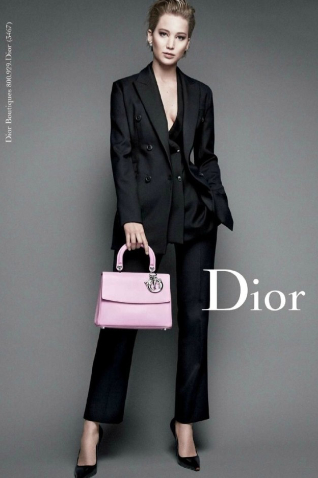 Дженнифер Лоуренс (Jennifer Lawrence) уже в четвертый раз подписывает контракт с модным домом Christian Dior и участвует в рекламной кампании аксессуаров Miss Dior. В этом осенне-зимнем сезоне актриса, недавно попавшая в Книгу рекордов Гиннесса, представила сумку Be Dior с откидным верхом. Аксессуар выполнен в розовом, желтом и светло-голубом оттенках, а также в нескольких текстурах.