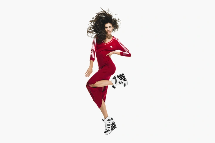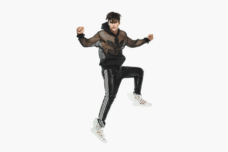 Джереми Скотт во второй раз создает коллекцию для Adidas. Он опубликовал фото первого результата в своем Instagram: (запрещенная в России экстремистская организация) на нем девушка позирует в платье, вдохновленном баскетбольной формой и украшенном блестками, а на ногах у нее красуются сапоги в форме кроссовок.