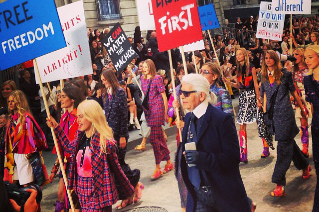 Модель @carolinedemaigret может провести за кулисы шоу Chanel и показать репетицию перед показом, а It-girl @chungalexa продублирует само шоу с неожиданного ракурса и попозирует рядом с транспарантами.