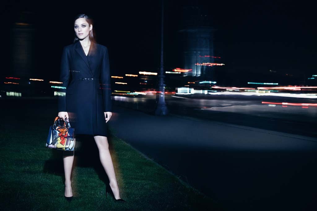 Появилась новая рекламная кампания Lady Dior с Марион Котийяр (Marion Cotillard) в главной роли. В этот раз она не прыгает радостно в воздухе, как на прошлых снимках, а гуляет по ночному Парижу, который словно покрылся легкой дымкой и рябью. Актриса носит вещи из коллекции pre-fall, созданные Рафом Симонсом (Raf Simons).
