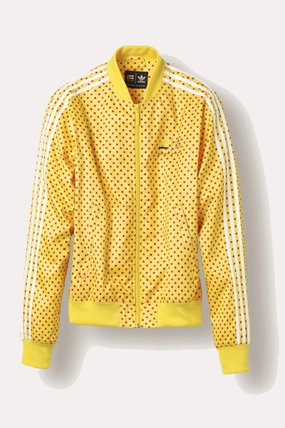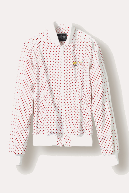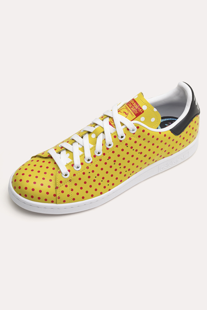Другая часть коллекции украшена меньшим по размеру принтом красного цвета. Кроссовки Stan Smith изготовлены из кожи, а куртки выполнены из атласа. Как куртки, так и обувь представлены в нескольких цветовых решениях: желтые и голубые с красным мелким горохом, а также куртки белоснежного цвета с красными точками небольшого размера.