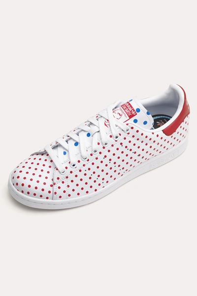 Две линейки "Polka Dot Pack" – это своеобразный эксперимент с различными цветовыми решениями, тканями и размером принта. В первой линейке представлены куртки Track Jackets и кроссовки Stan Smith из натуральной кожи трех разных цветов в крупный горох. Белые «горошины» разбросаны по обуви и курткам красного, голубого и черного цветов.