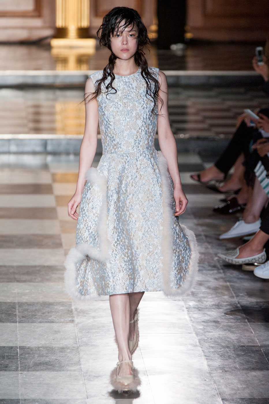 Почти все вещи из новой весенне-летней коллекции Simone Rocha окантованы перьями марабу разных цветов. Это касается и обуви – балетки и лодочки также покрыты этим пухом.