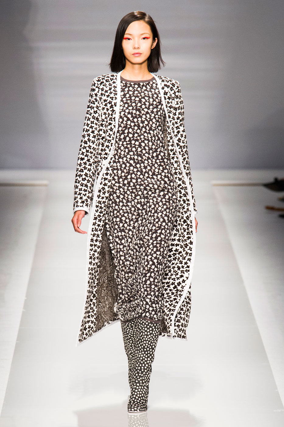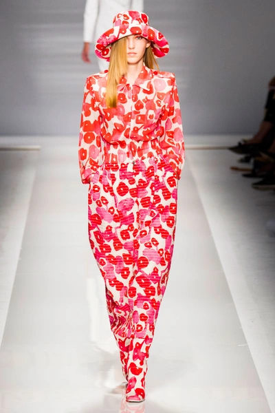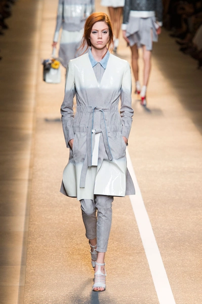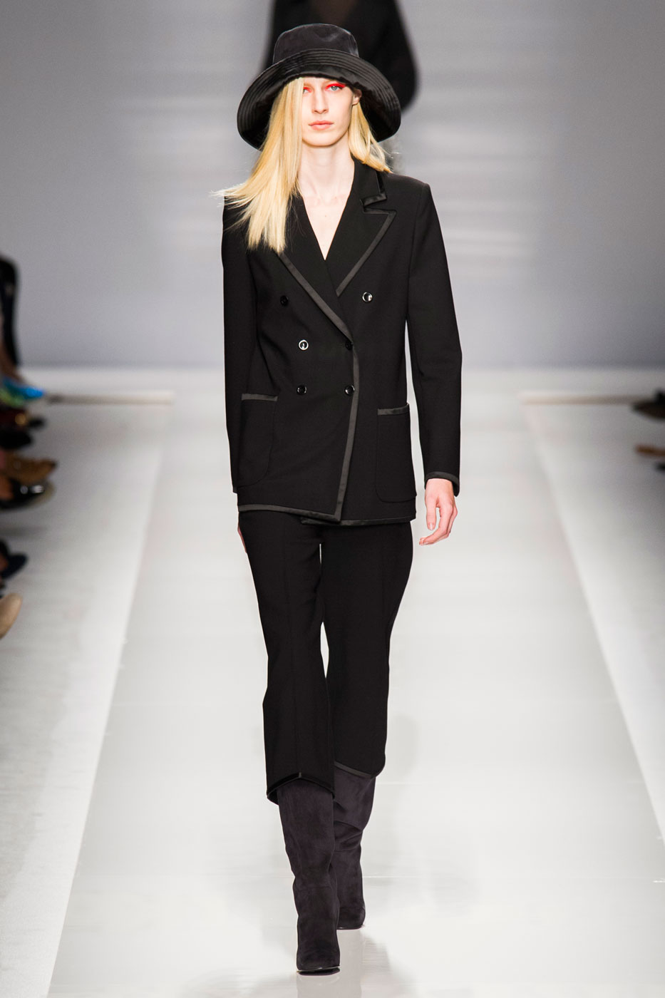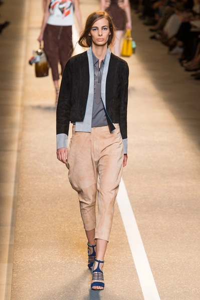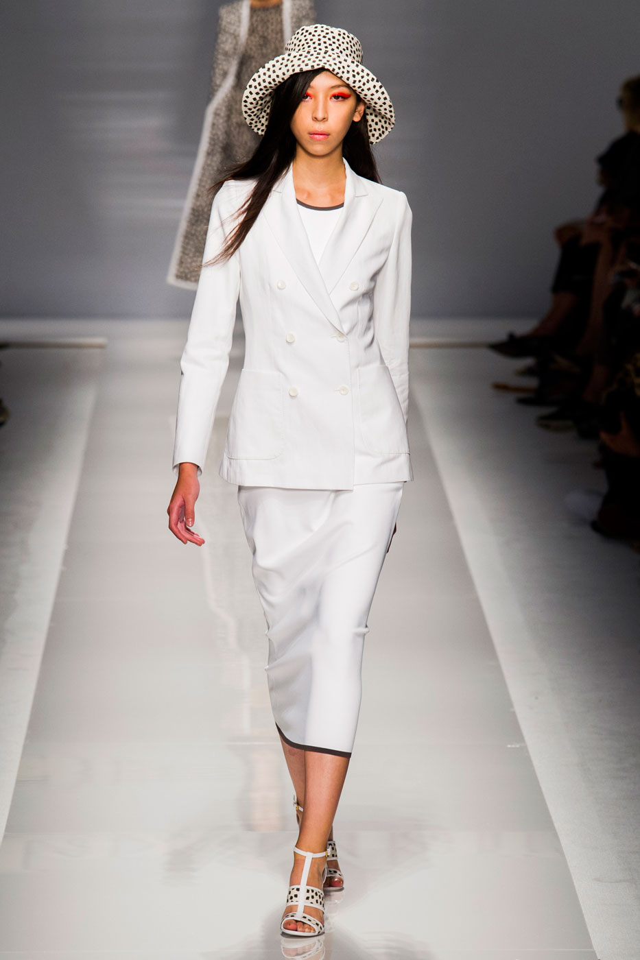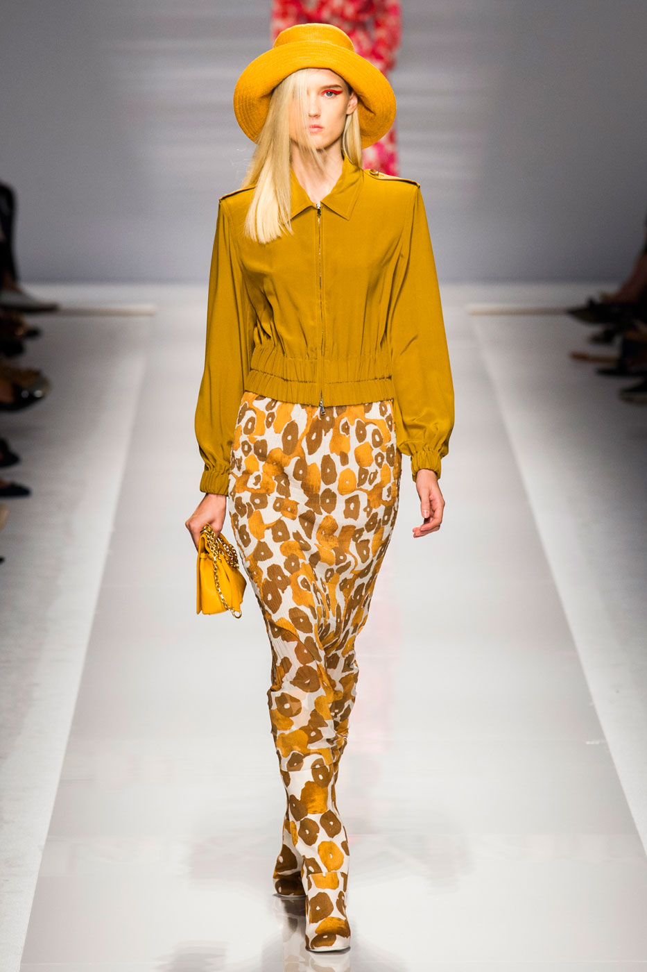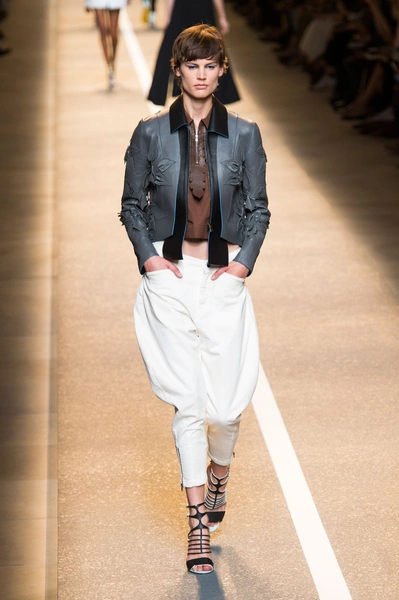 Max Mara представил очень утонченную и элегантную коллекцию, вдохновленную богемными 70-ми. Девушки носят наряды в горох и шляпы в стиле бохо, а развевающиеся штанины их брюк и комбинезонов плавно переходят в обувь. Тема хиппи представлена легко и ненавязчиво розовым платьем-халатом и зеленым комбинезоном с плащом. Приглушенная палитра Max Mara к концу шоу постепенно и вовсе слилась в черный, представив несколько гранжевых вещей и снова, как и на лондонской Неделе моды, с прозрачными топами.