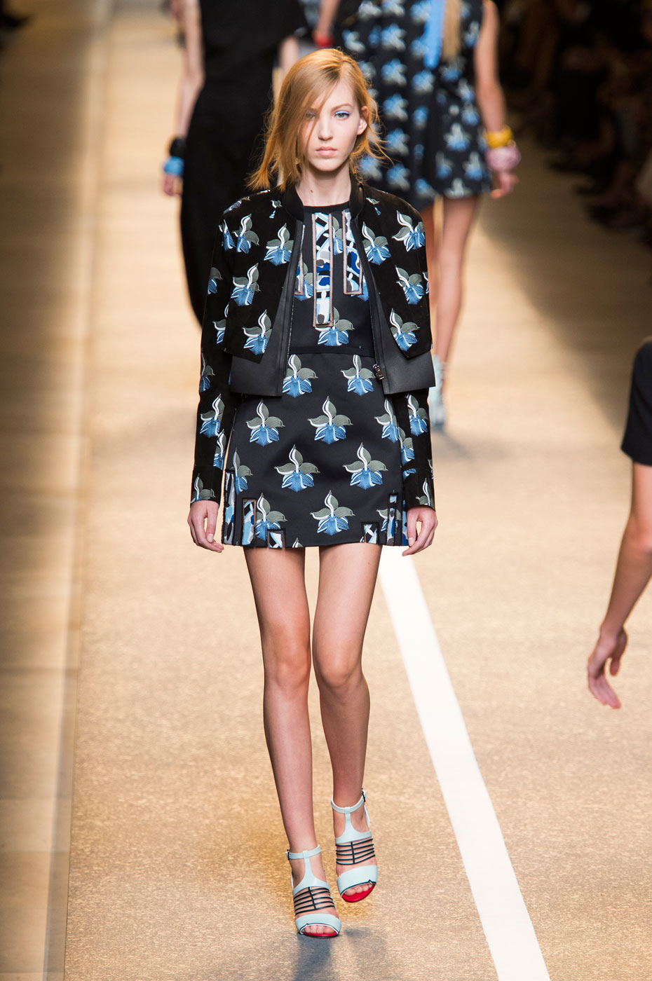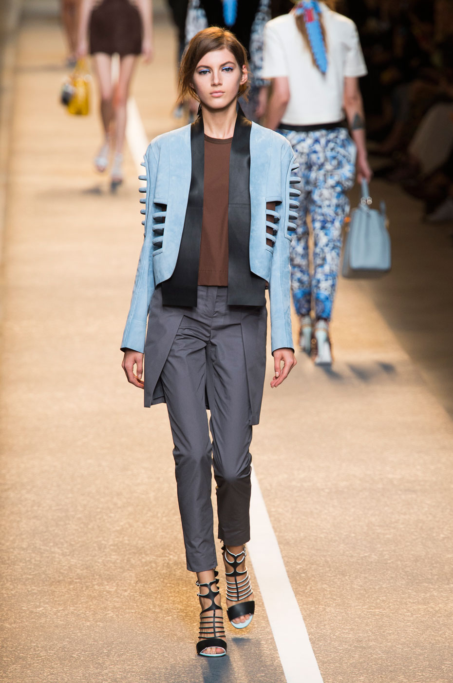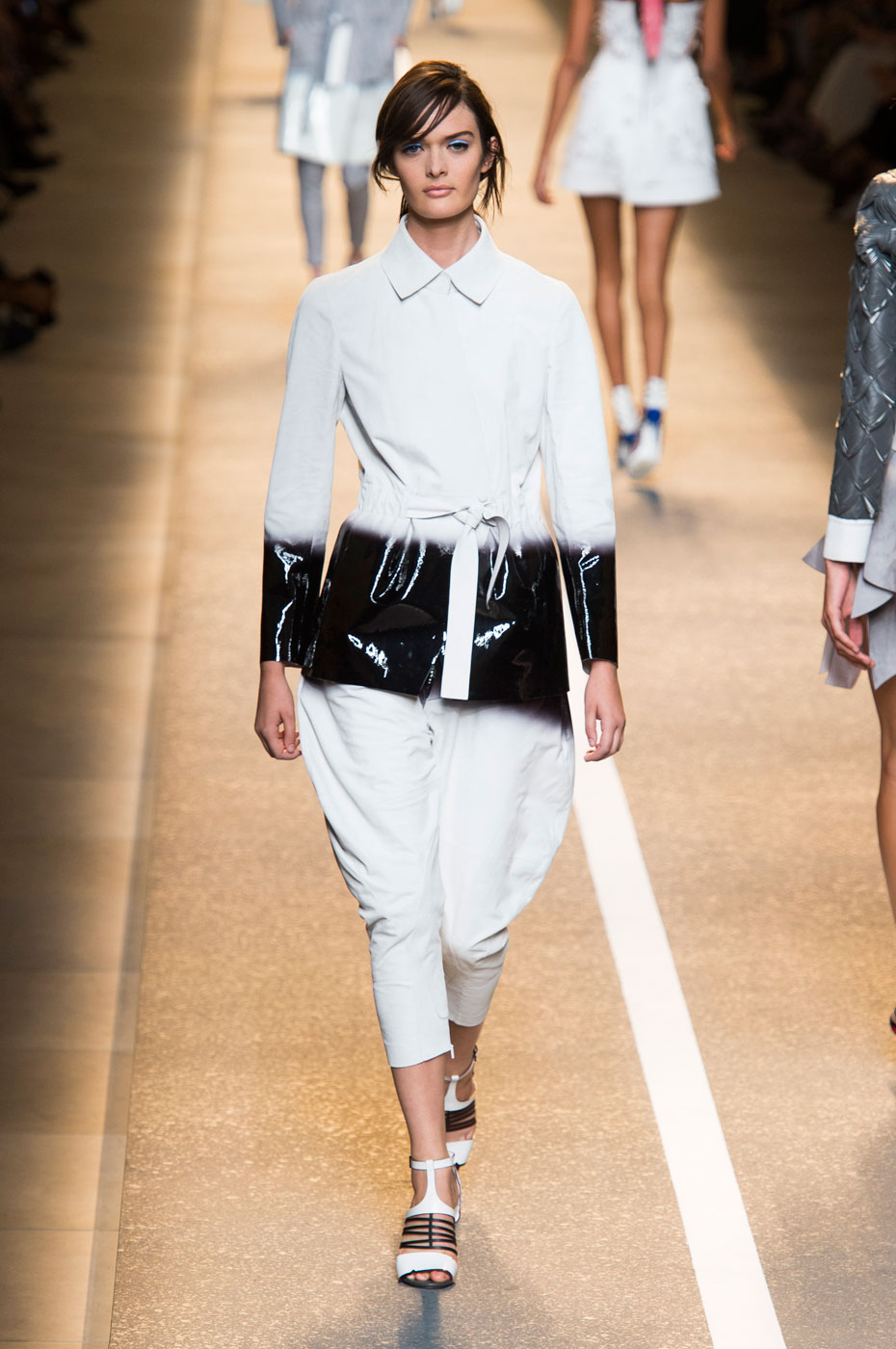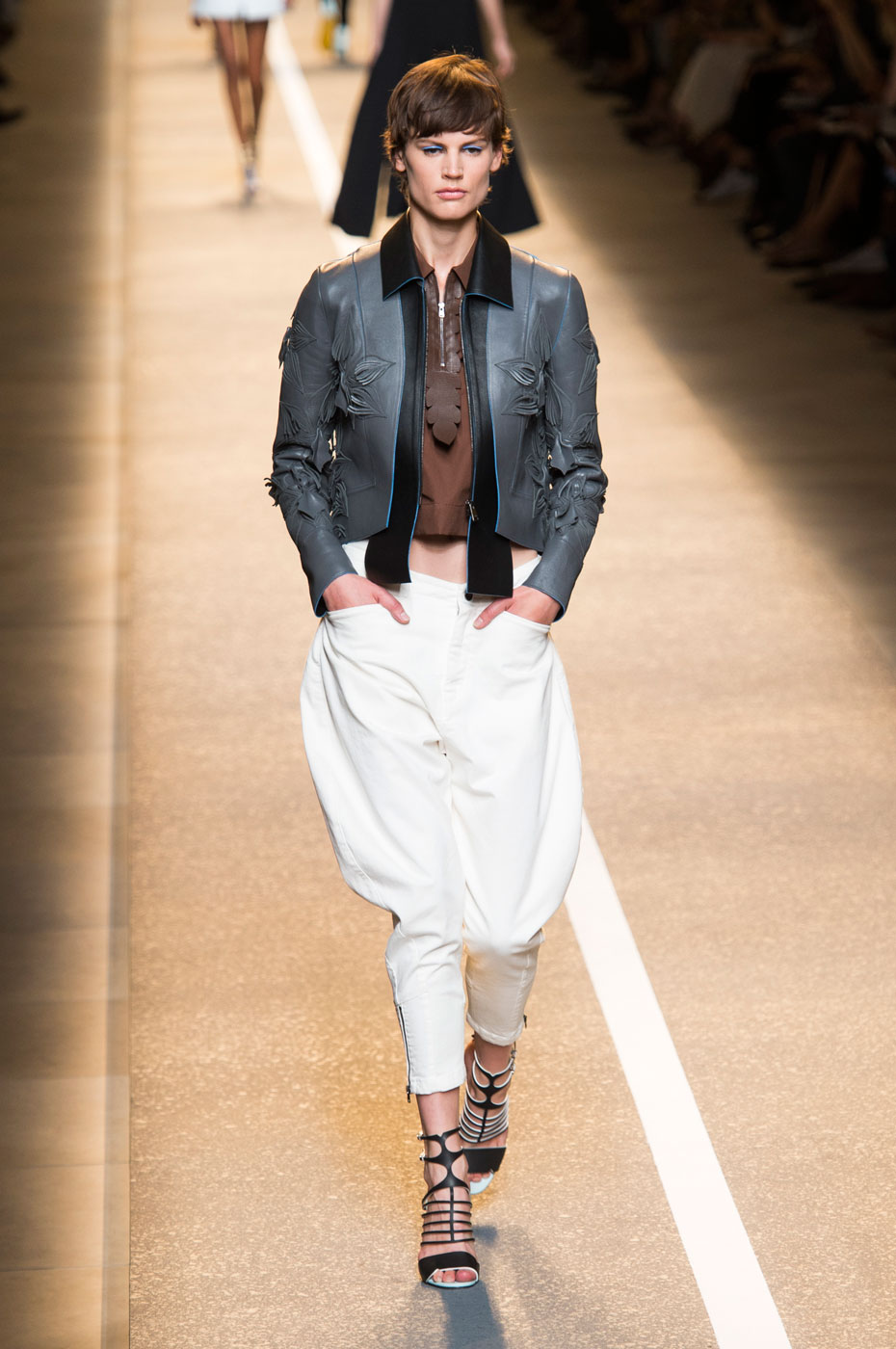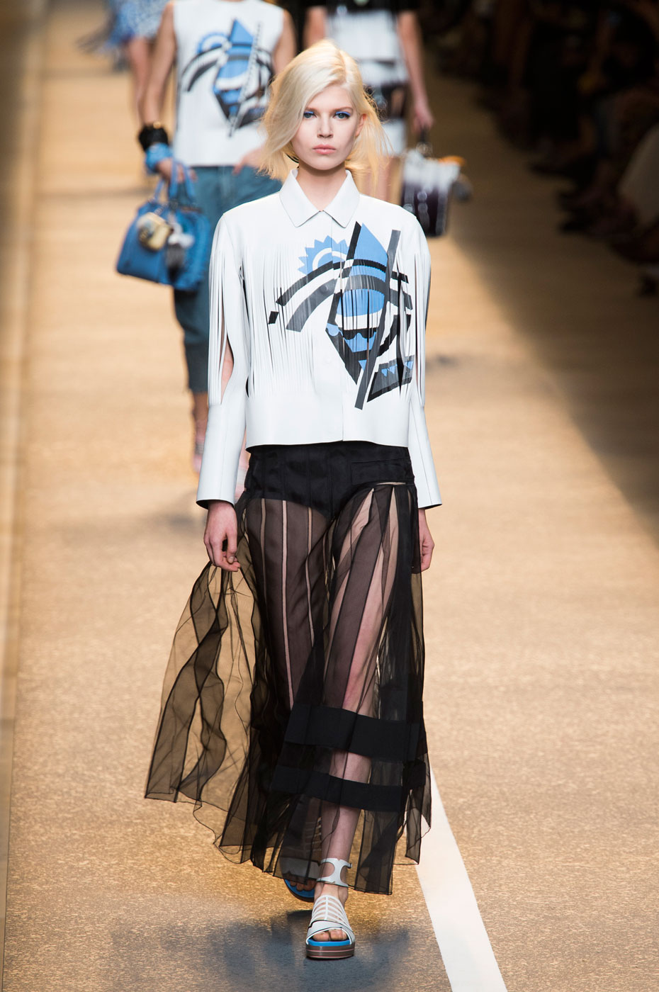 Сильвия Вентурини Фенди рассказала, что палитра новой коллекции вдохновлена цветом неба во время дождя, которое можно увидеть из Колизея. Гладиаторская тема и дальше прослеживалась в коллекции: модели носили поверх брюк черные юбки, открывающие переднюю часть ног, а позже и платья с имитацией гладиаторских доспехов. Карл Лагерфельд посчитал, что одним из символов дома Fendi должна стать орхидея, и поместил ее в виде узоров на платья, блузки и рубашки, а на черных жакетах и белых нарядах цветы распустились по-настоящему – они были сделаны из объемных материалов. Завершилось шоу выходом девушек в пышных, но коротких платьях, расшитых перьями. Они выполнены в розовых, голубых и черных цветах.
