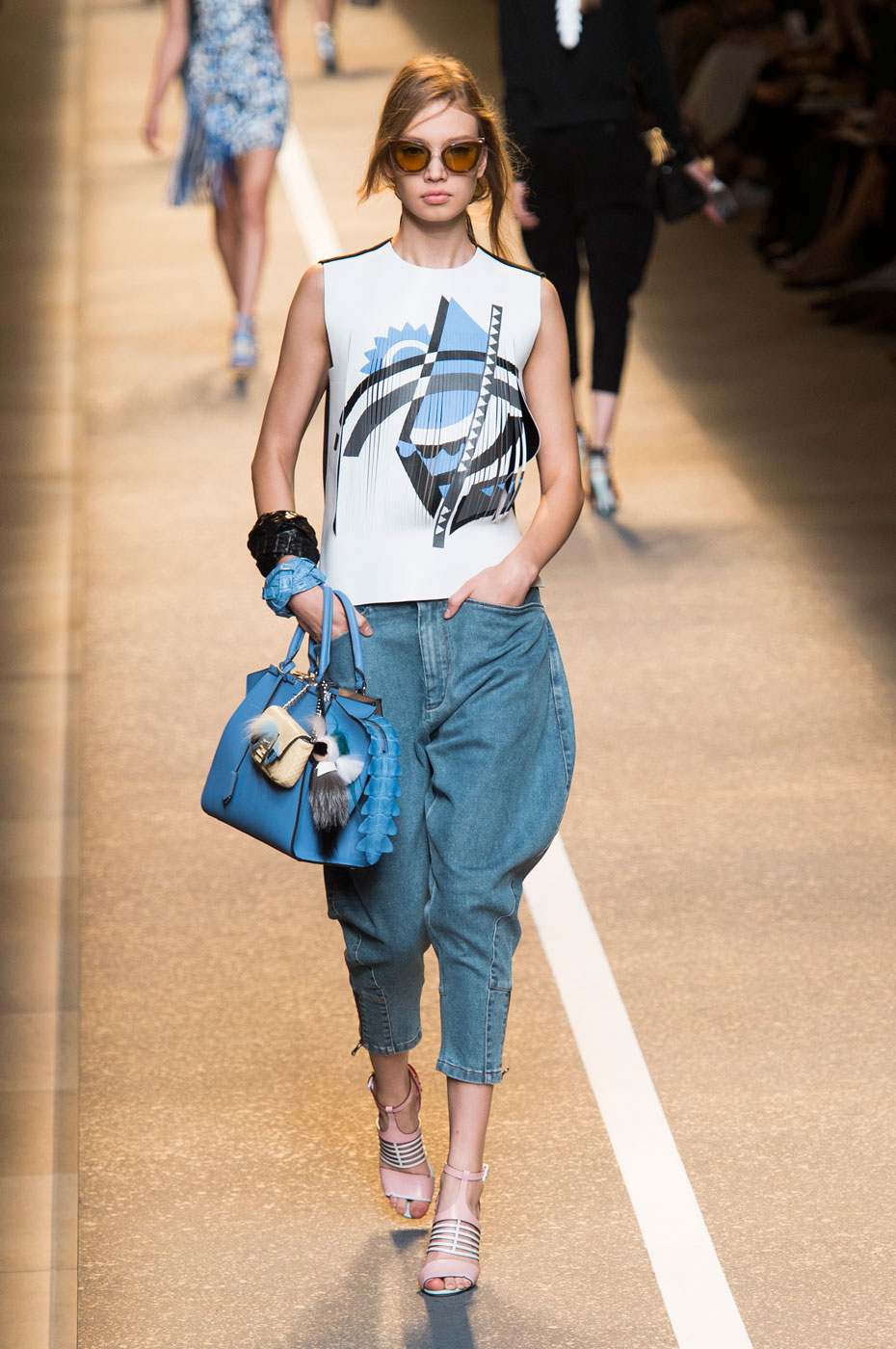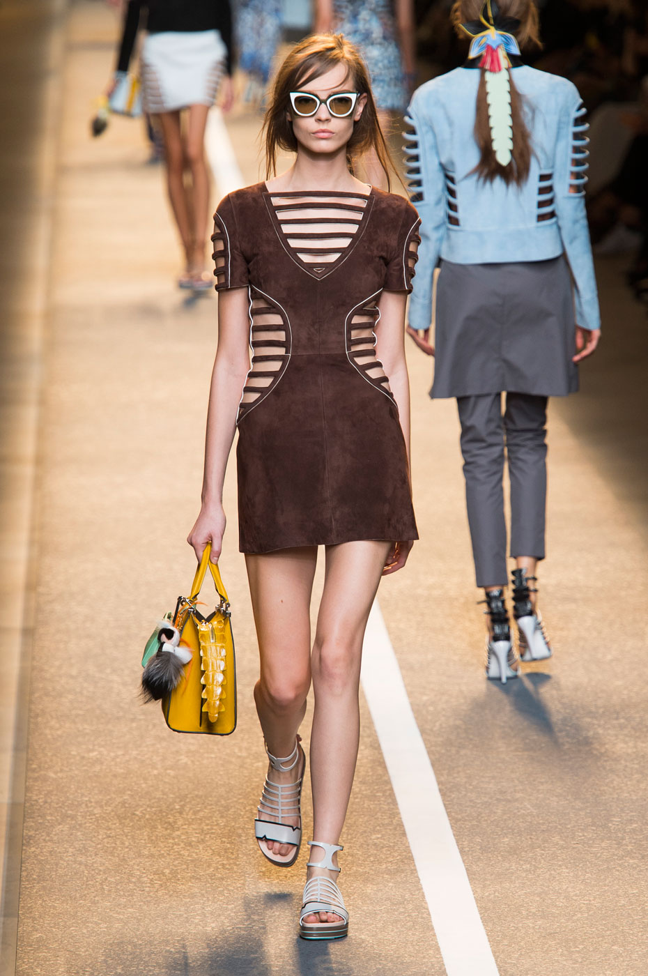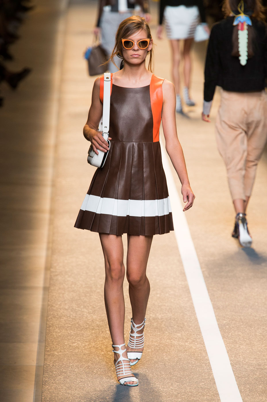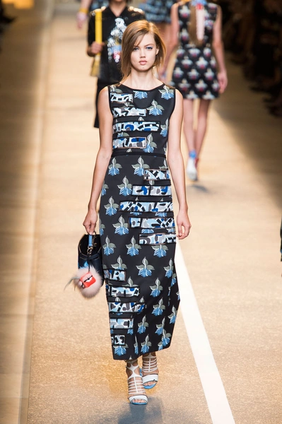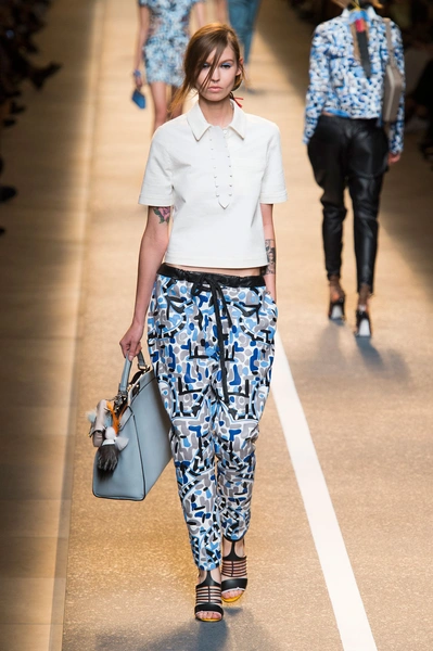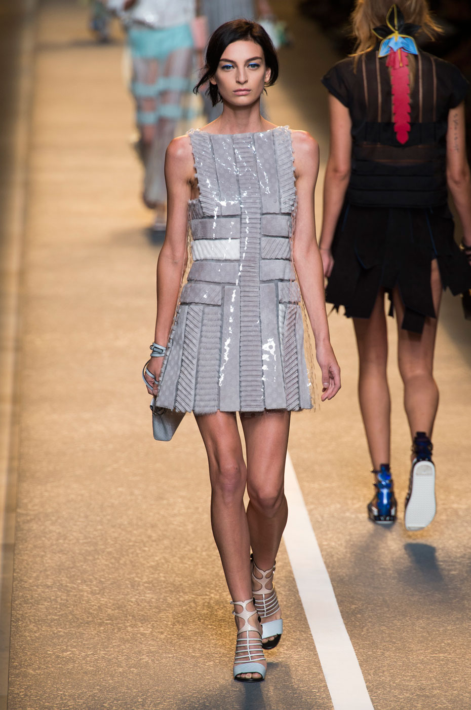 Сильвия Вентурини Фенди рассказала, что палитра новой коллекции вдохновлена цветом неба во время дождя, которое можно увидеть из Колизея. Гладиаторская тема и дальше прослеживалась в коллекции: модели носили поверх брюк черные юбки, открывающие переднюю часть ног, а позже и платья с имитацией гладиаторских доспехов. Карл Лагерфельд посчитал, что одним из символов дома Fendi должна стать орхидея, и поместил ее в виде узоров на платья, блузки и рубашки, а на черных жакетах и белых нарядах цветы распустились по-настоящему – они были сделаны из объемных материалов. Завершилось шоу выходом девушек в пышных, но коротких платьях, расшитых перьями. Они выполнены в розовых, голубых и черных цветах.