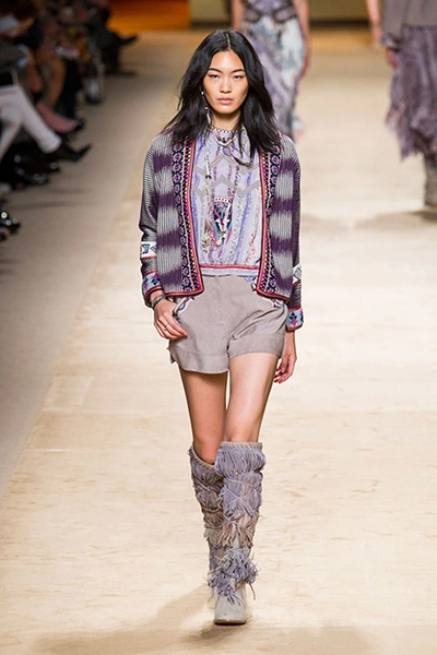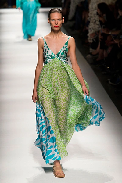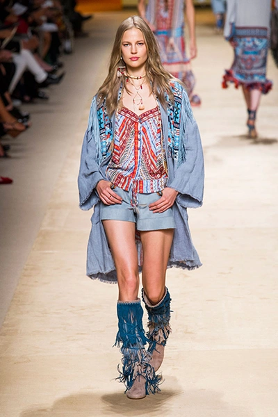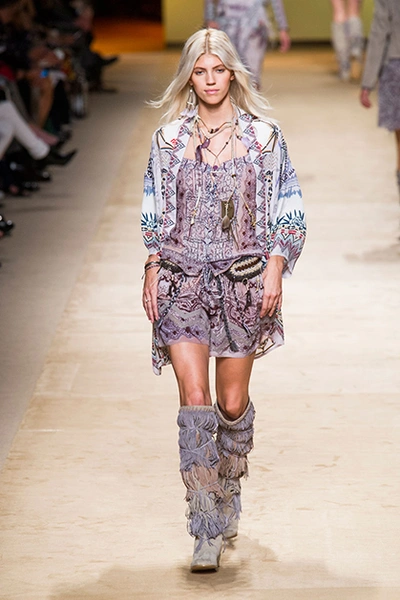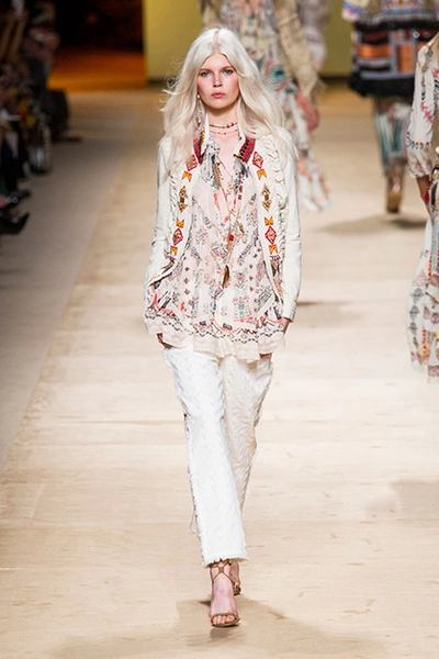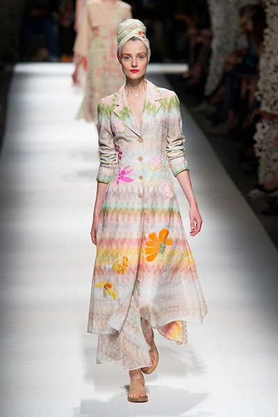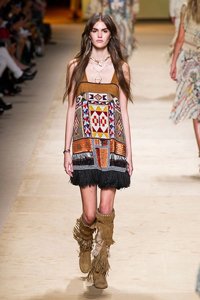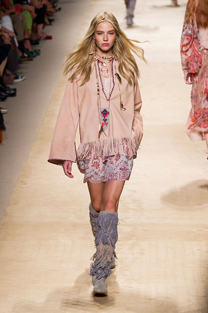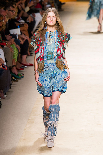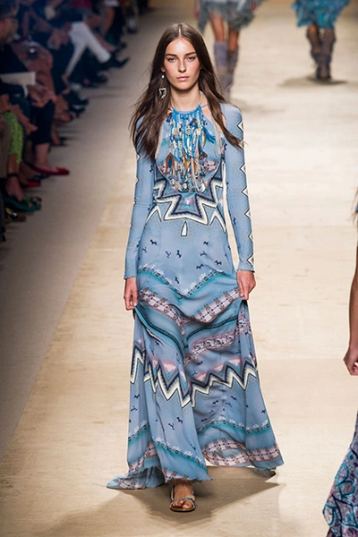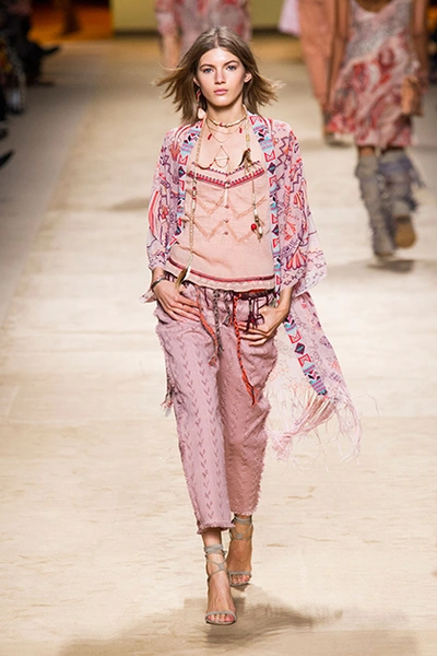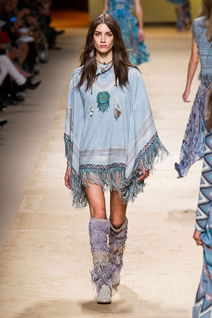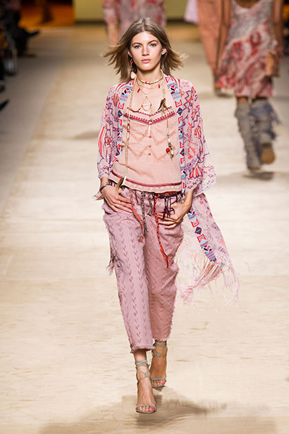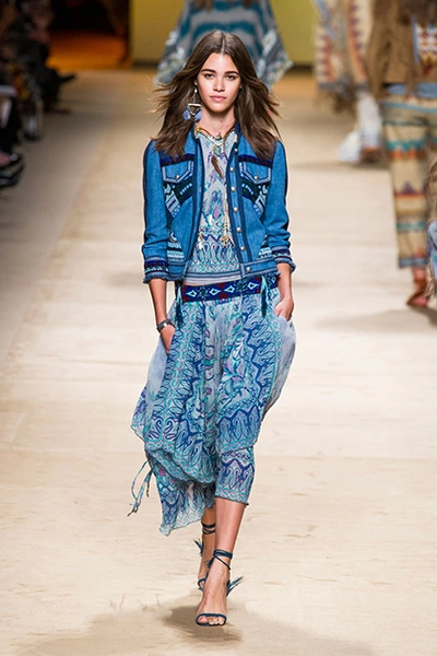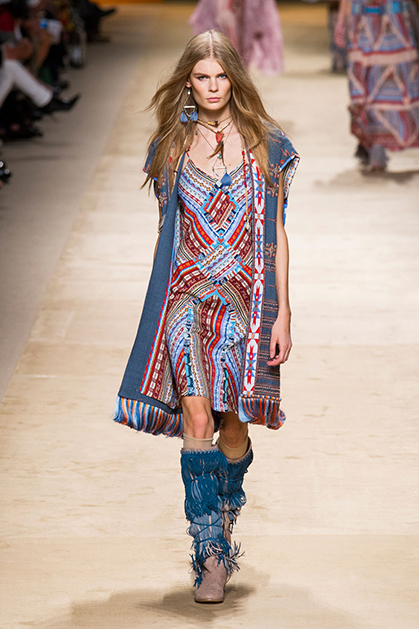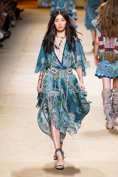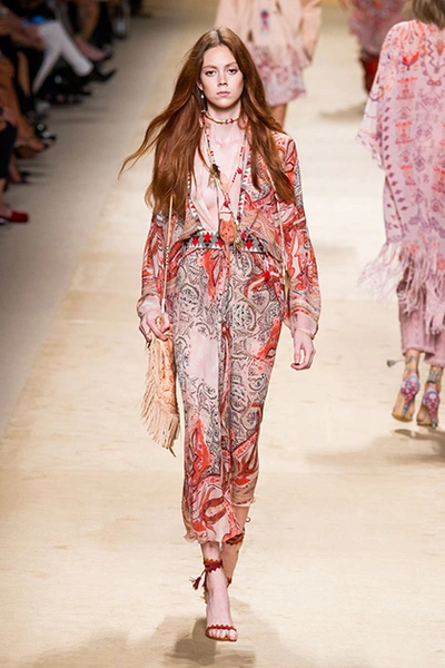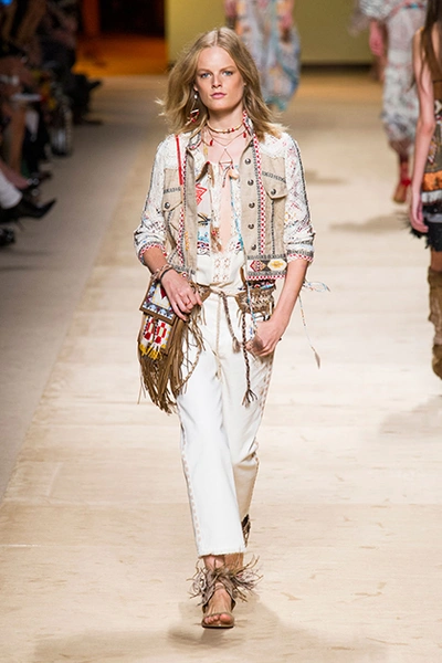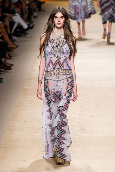 Дизайнер марки Etro Вероника Этро всегда отличалась любовью к ручной работе и вниманию к мельчайшим деталям, которые, собравшись вместе, создают невероятные шедевры. Весенне-летняя коллекция бренда – продолжение традиций. Все наряды, продемонстрированные моделями, создавались и украшались вручную. Несмотря на сложность работы, сама одежда получилась очень легкой, воздушной, игривой. На бохо, стиль 70-х и индийские мотивы Веронику вдохновила близость к природе «в ее самом диком проявлении».