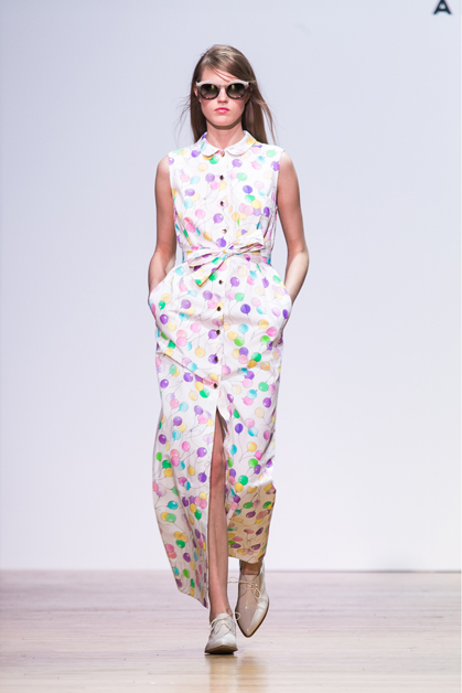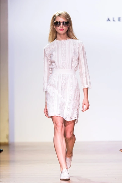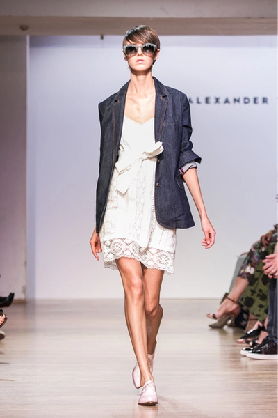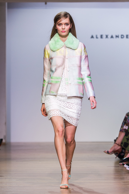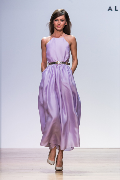Вчера в московском театре Школа Драматического искусства состоялся показ новой коллекции Alexander Terekhov весна-лето 2015. Летящие платья, шелк, шифон, полупрозрачные топы – дизайнер вновь доказывает, что самое прекрасное в женщине – ее хрупкость и нежность. В целом коллекция выполнена в мягких пастельных оттенках: ментоловом, сиреневом, нежно желтом и индиго.