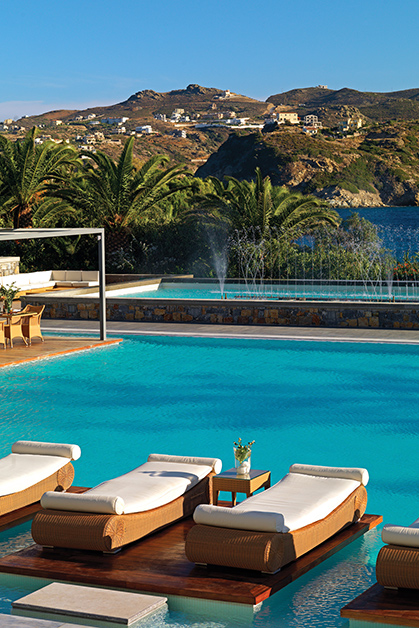 На самом большом греческом острове не очень много зелени, и отели, которым достались бухты с чистейшей изумрудного цвета водой, тоже можно пересчитать по пальцам. Частный отель (он принадлежит греческой семье Капси) Out of the Blue Capsis занял собой целый полуостров в Эгейском море и устроил там роскошный ботанический сад. Вариантов размещения в этом саду несколько. Есть бутик-отели Crystal Energy и Ruby Red Regal с дизайнерскими номерами, есть сьюты, мезонетты и отдельные виллы с бассейнами, в этом году добавился Oh! All-Suite Hotel c полотенцами и халатами Herme`s, антиквариатом и картинами знаменитых греческих художников. Пляжей три, в других местах берег скалистый – вдоль него нескучно плавать с маской, а еще лучше кролем, чтобы дать худеющему организму приятную физическую нагрузку.