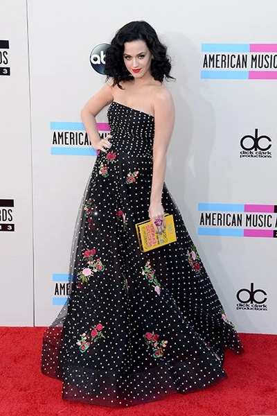 Кэти Перри. И для бунтарки Кэти Перри у модельера нашлось своё уникальное платье. На церемонию American Music Awards в ноябре 2013 года певица отправилась в чёрном платье в горошек. Юбка платья была покрыта кружевом, расшитым цветами.