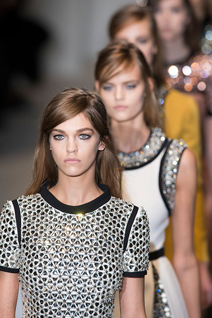 Думая о цветовой палитре, мы старались использовать знаковые для бренда оттенки. Например, вы всегда найдете золотой: в тенях, в помаде, в пудре. В этой истории многое крутится вокруг него. Потому что он ассоциируется с шиком, богатством. Мы так долго искали нужный оттенок, который не выглядел бы дешево и вульгарно! И в этой работе нам помогала арт-директор Пэт Макграт. Ведь она столько лет работает на показах Gucci, что точно знает, как это должно быть.