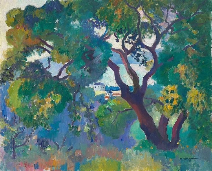Анри Манген — близкий друг «диких» Анри Матисса и Альбера Марке, которых прозвали «три М» — часто приглашал коллег-художников работать в своем саду. Но особым местом для живописца стал Сен-Тропе и его окрестности. На Осеннем салоне 1905 года написанные на берегу Средиземного моря полотна Мангена изысканно выделялись на фоне работ других «дикарей». Неизменную сочную палитру, «его вспышки оранжевого, его роскошные красные» отмечали современники, подчеркивая, что «даже тени, включающие в себя зеленоватые тона, вносили свой вклад в ощущение легкости и веселья».