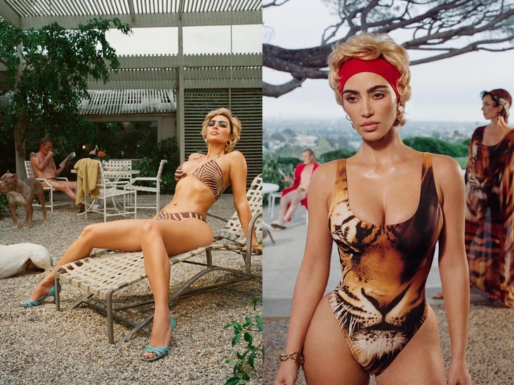 Что же касается коллаборации SKIMS x Roberto Cavalli, то она представляет собой лимитированную коллекцию пляжной одежды, созданных Ким Кардашьян совместно с итальянским люксовым брендом. В капсулу вошли бикини, слитные купальники, шифоновые накидки и платки с крупными анималистичными и флоральными принтами. Вдохновением для сотрудничества стали архивные вещи Дома, которые Кардашьян носила в поездках и которые, по ее словам, долго оставались у нее в памяти (читайте также: Культ архивов: как Кардашьян-Дженнер вдохнули новую жизнь в винтажные платья).