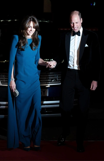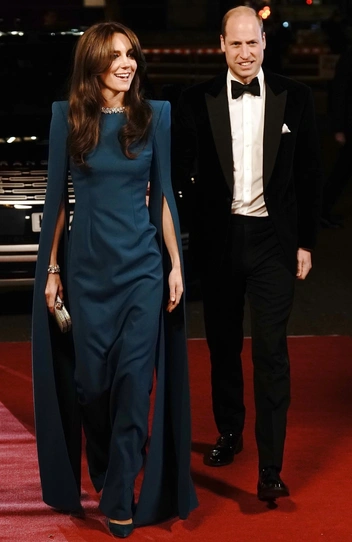 Для Royal Variety Performance в 2023 году Кейт выбрала роскошный образ — длинное платье цвета морской волны и лодочки на высоком каблуке. Однако идти в таком наряде, казалось, было не очень просто. Поэтому Уильям заботливо придерживал супругу за руку, когда они выходили из машины и помогал ей сделать первые шаги по красной дорожке мероприятия.