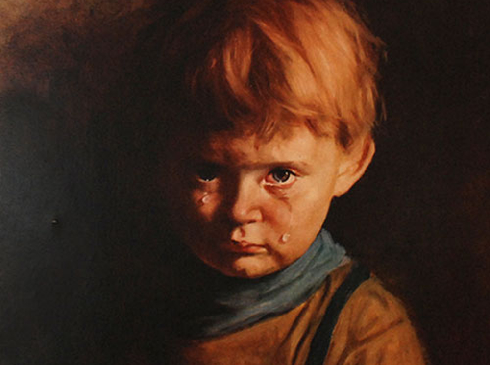 …гласил заголовок на передовице британской газеты The Sun, вышедшей в сентябре 1985 года. Главная статья номера была посвящена странной истории, произошедшей с Роном и Мэй Холл в городе Ротерем на севере Англии. Семейная пара случайно оставила сковородку на огне, что привело к пожару, который уничтожил их дом до основания. Но среди обугленных обломков и руин пожарные нашли один предмет, который остался практически невредимым в этом сильном пожаре. Это была репродукция картины «Плачущий мальчик». Картина лежала недалеко от того места, где начался пожар. Ее края слегка обгорели, но пламя не коснулось лица грустного малыша на портрете. Его ярко-голубые, наполненные слезами глаза будто бы взирали на катастрофическую картину разрушения с обидой и злостью.