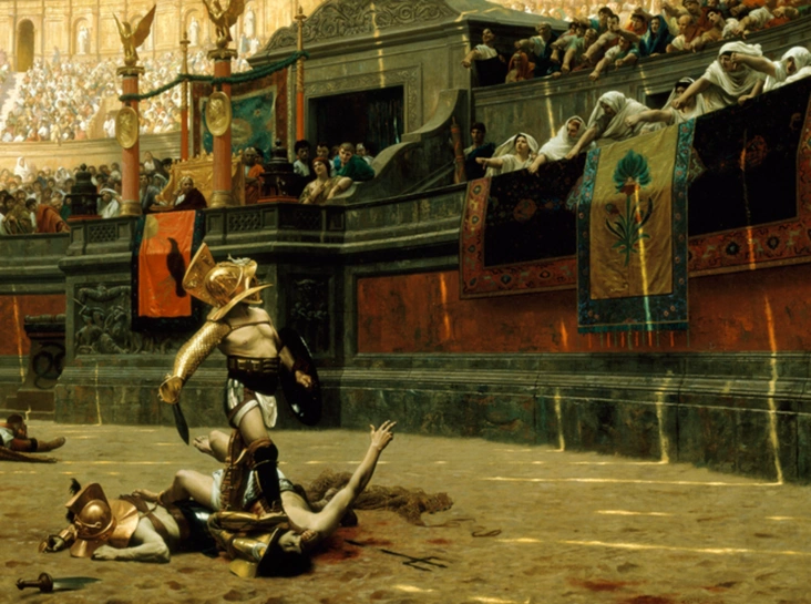 В Древнем Риме не было более популярного развлечения для народа, чем гладиаторские бои, а самые успешные бойцы были символами мужества и главными объектами женских сексуальных фантазий. И этот «фанатизм» нередко переходил все мыслимые и немыслимые границы. Например, римские врачи рекомендовали пить кровь гладиаторов для лечения разнообразных болезней — от эпилепсии до бесплодия. Разумеется, никаких научных подтверждений эффективности этого средства не существовало, все держалось лишь на слепой вере и преклонении перед силой мужчин-бойцов. А вот пот победителей считался одним из мощнейших афродизиаков, который женщины использовали в качестве крема для лица. Специально обученные люди собирали пот и грязь с тела гладиатора после успешного боя, а затем продавали всем желающим за круглую сумму.
