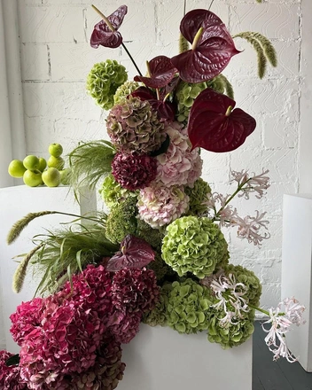Гортензии отлично смотрятся как к монокомпозициях, так и в сборных букетах. Но важно помнить: эти цветы очень зависимы от воды. Покупайте только свежие экземпляры и сразу же дарите!
