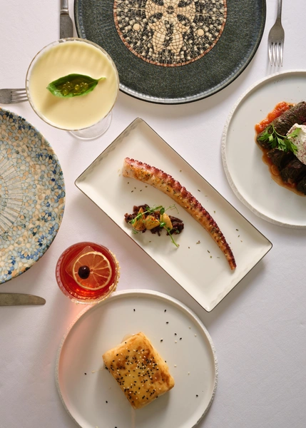 Новый ресторан с акцентом на средиземноморскую кухню с восточными нотками. Меню ориентировано на формат sharing-style — здесь можно попробовать все понемногу: от классических мезе до турецких блюд в современной интерпретации. Наш must-try из основного меню: традиционные манты, кебаб Sarma Beyti и салат Roka. Приятно впечатлила и необычная винная карта, а также десерты, в которых восточные традиции переплетаются с актуальными гастрономическими трендами. Ресторан расположен в нескольких шагах от частного пляжа, а терраса находится прям внутри сада отеля Delano Dubai. К морской тематике отсылает и пестрый интерьер заведения в голубых оттенках, а на террасе атмосферу дополняет белый рояль и вид на колесо обозрения Ain Dubai. Все это создает нарядную, но при этом уютную обстановку, идеально подходящую для ужина.