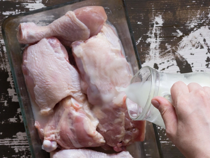 Поскольку курица имеет тенденцию высыхать при приготовлении, хозяйки давно пользуются одной хитростью, чтобы избежать этого эффекта. При замачивании молоко помогает смягчить курицу и добавить ей влаги. То же самое можно делать с индейкой.