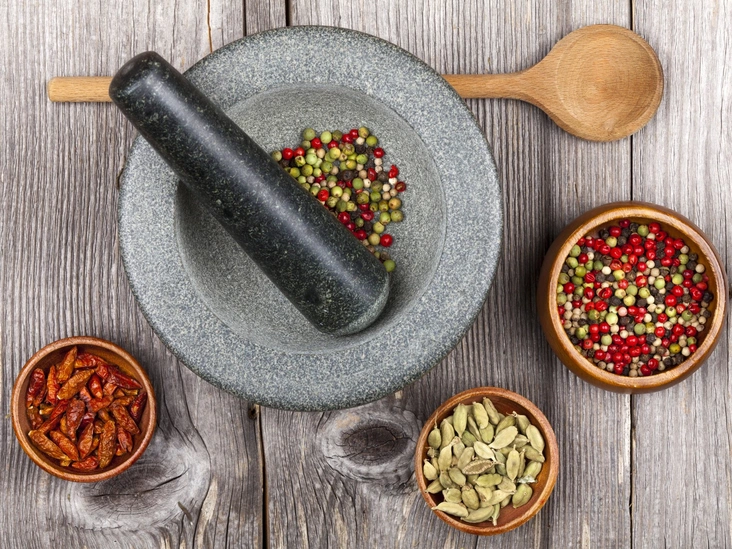 Пестик и ступка могут показаться чем-то старомодным, ведь сегодня все специи доступны в измельченном виде, однако помните, что они быстро теряют свои вкусовые качества и пользу после измельчения. Так что лучше покупать цельные специи (это также может помочь сэконоить) и растирать их в ступке перед готовкой.