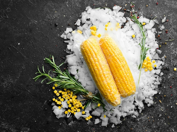 Кукурузу тоже можно покупать в замороженном виде или замораживать самостоятельно (как в початках, так и в зернах). Разморозить перед приготовлением кукурузу очень легко: просто сполосните под теплой водой.