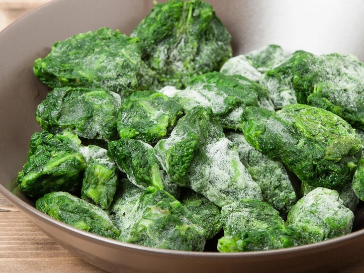 В 100 г шпината содержится до половины суточной нормы витамина А и до трети нормы витамина C. К тому же этот листовой овощ содержит огромное количество клетчатки. В замороженном виде шпинат сохраняет все питательные вещества и хранится очень долго.