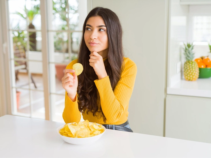 Хрустящие картофельные слайсы с разными ароматами — частый атрибут просмотра фильма или футбола. Перед экраном вы съедаете огромную пачку крахмала, жиров и соли, а такой объем тяжелой еды негативно влияет на работу печени, желудка.