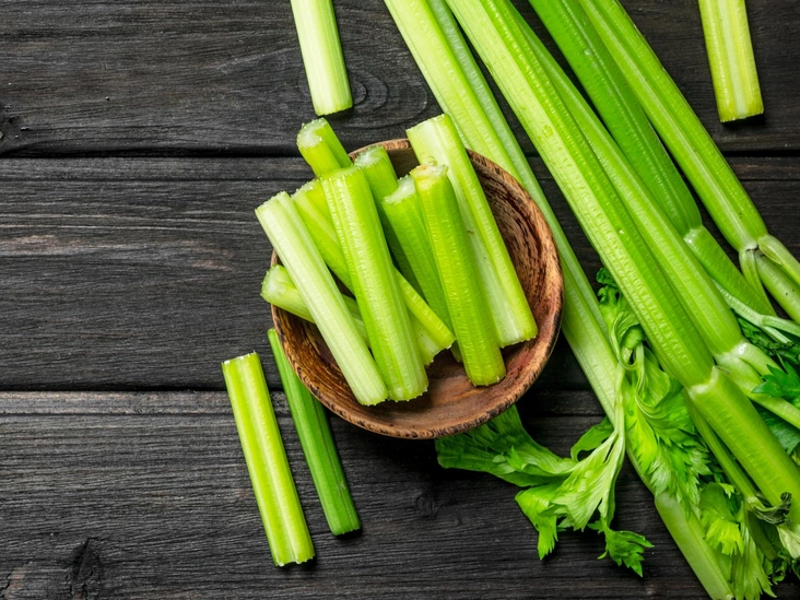 На порцию, включающую около 2 средних стеблей сельдерея, приходится 14 калорий, 0,7 г белка, 3 г углеводов, 0,2 г жира. Любой соус добавит больше калорий (лучше обратить внимание на хумус).