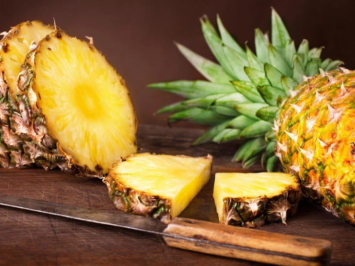 100 г или примерно 1/2 стакана свежего, очищенного и нарезанного кубиками ананаса содержит 57 калорий, 0 г белка, 14,3 г углеводов, 0 г жира. Консервированный ананас обладает другой калорийностью.
