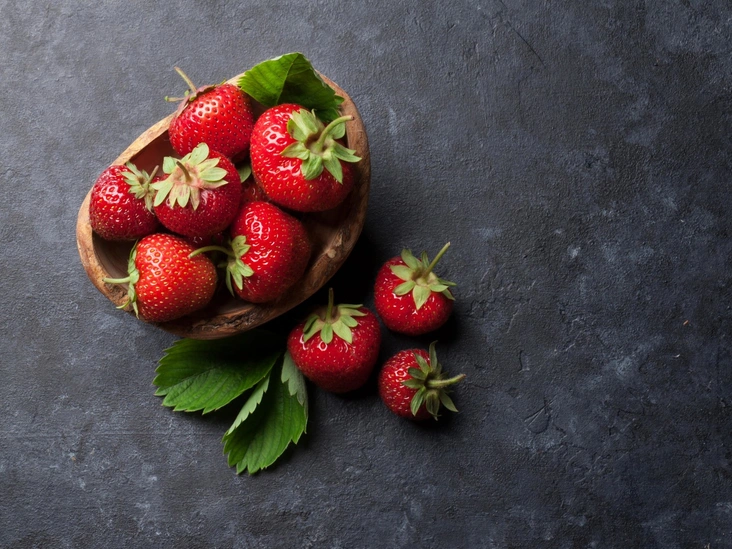 На 100-граммовую порцию, состоящую из примерно 6 средних ягод клубники, приходится 36 калорий и 0,7 г белка, 9,3 г углеводов, 0 г жира. Сливки, которые многие любят добавлять к этой ягоде, в расчет не входят (зато без них можно съесть больше клубники).