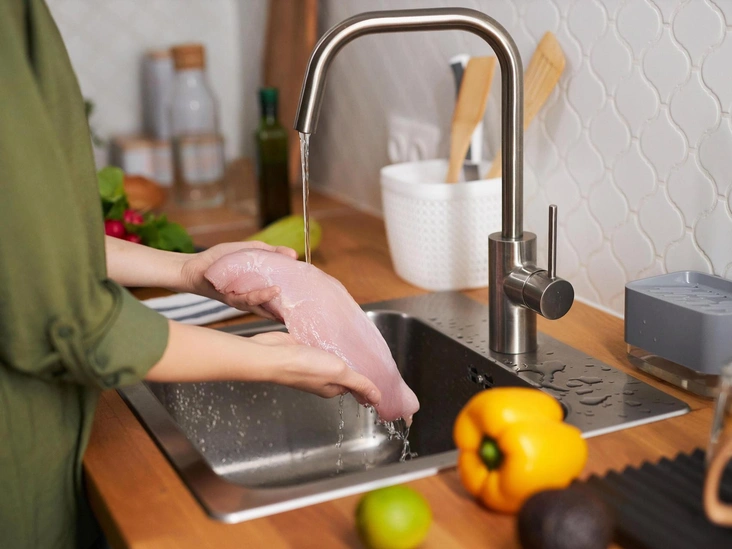 Есть и другая причина, по которой многие моют мясо — желание смыть кровь. Но для этого эксперты рекомендуют просто промакнуть мясо бумажным полотенцем.