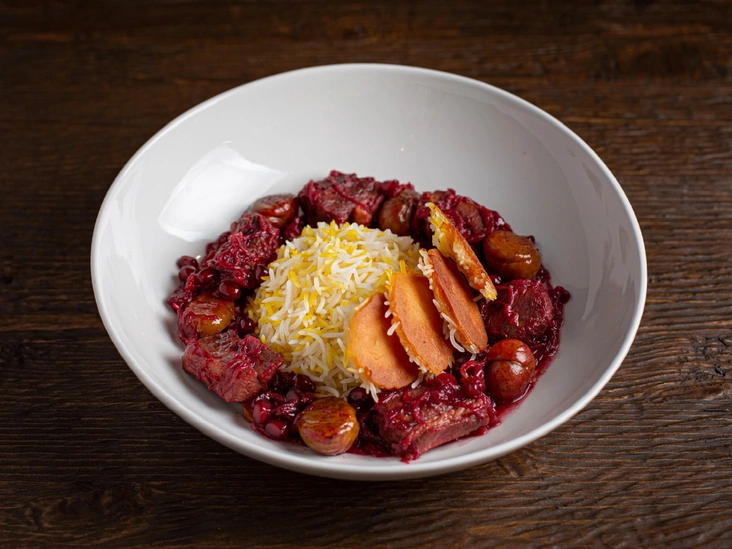 Плов говурма с бараниной, каштанами и гранатом