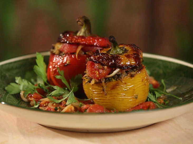 Фаршированные перцы по-азербайджански с начинкой из риса и чечевицы