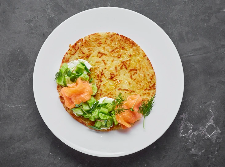 Картофельный драник с лососем