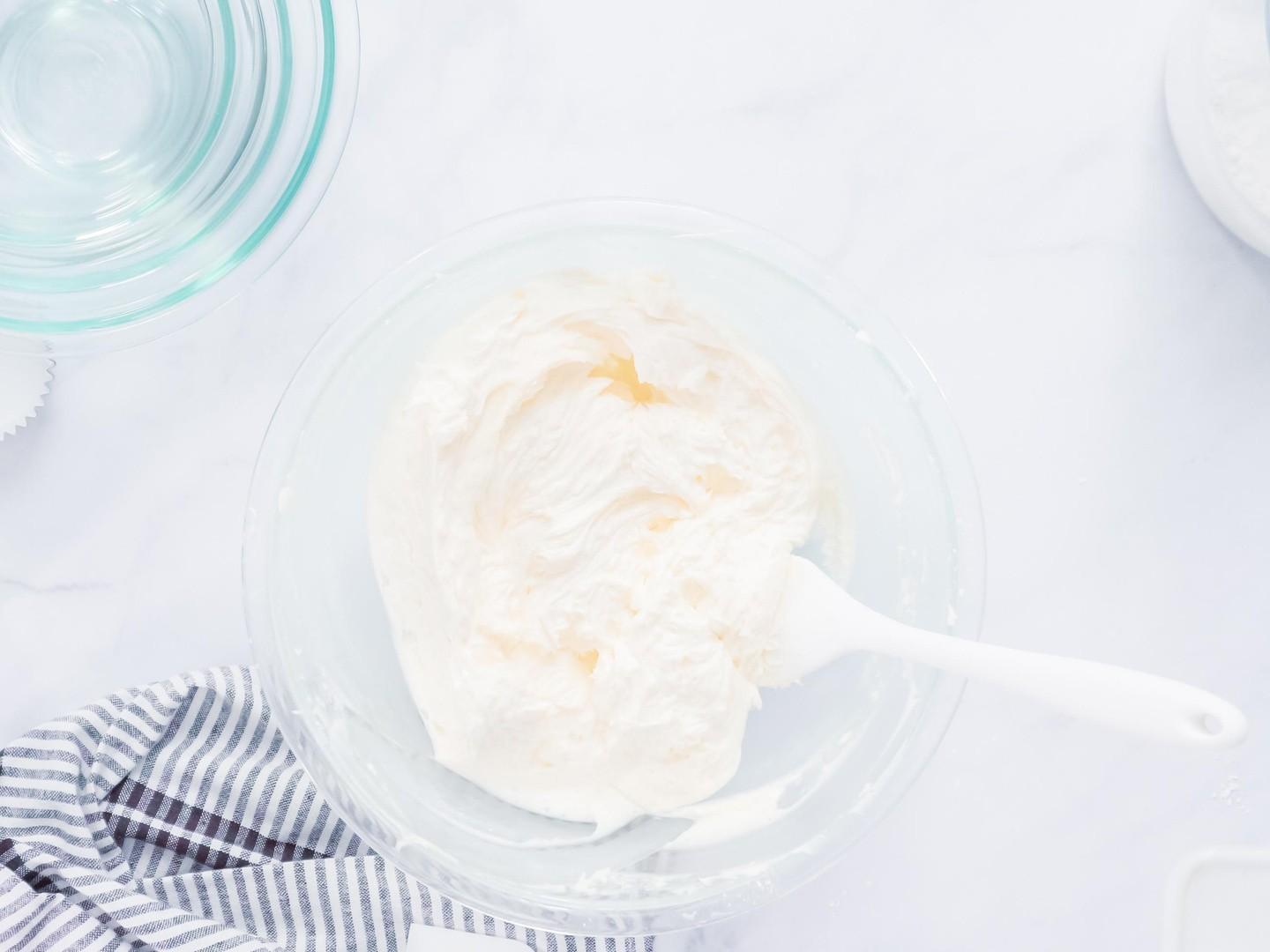 Для крема смешайте творог со сгущенкой и кокосовой стружкой. По желанию добавьте миндаль - орехи можно оставить целыми или измельчить.