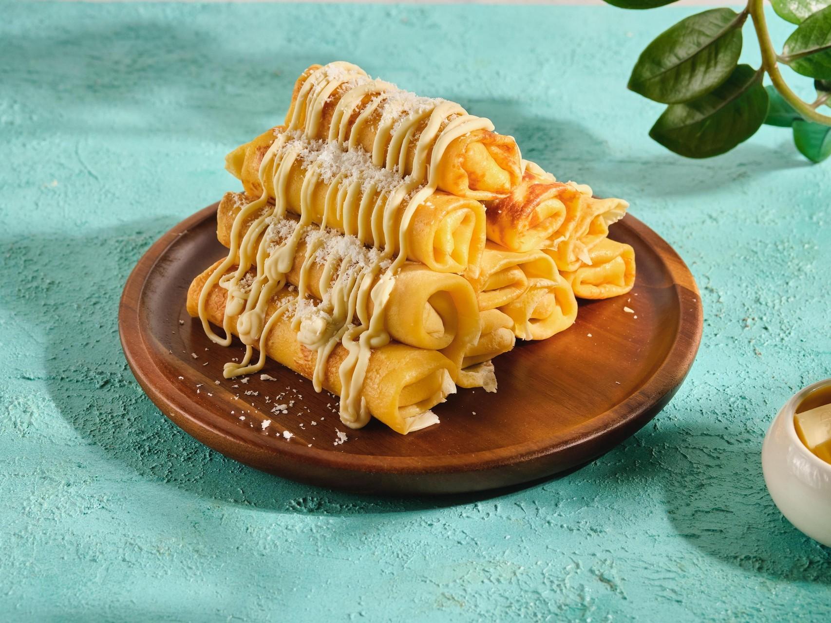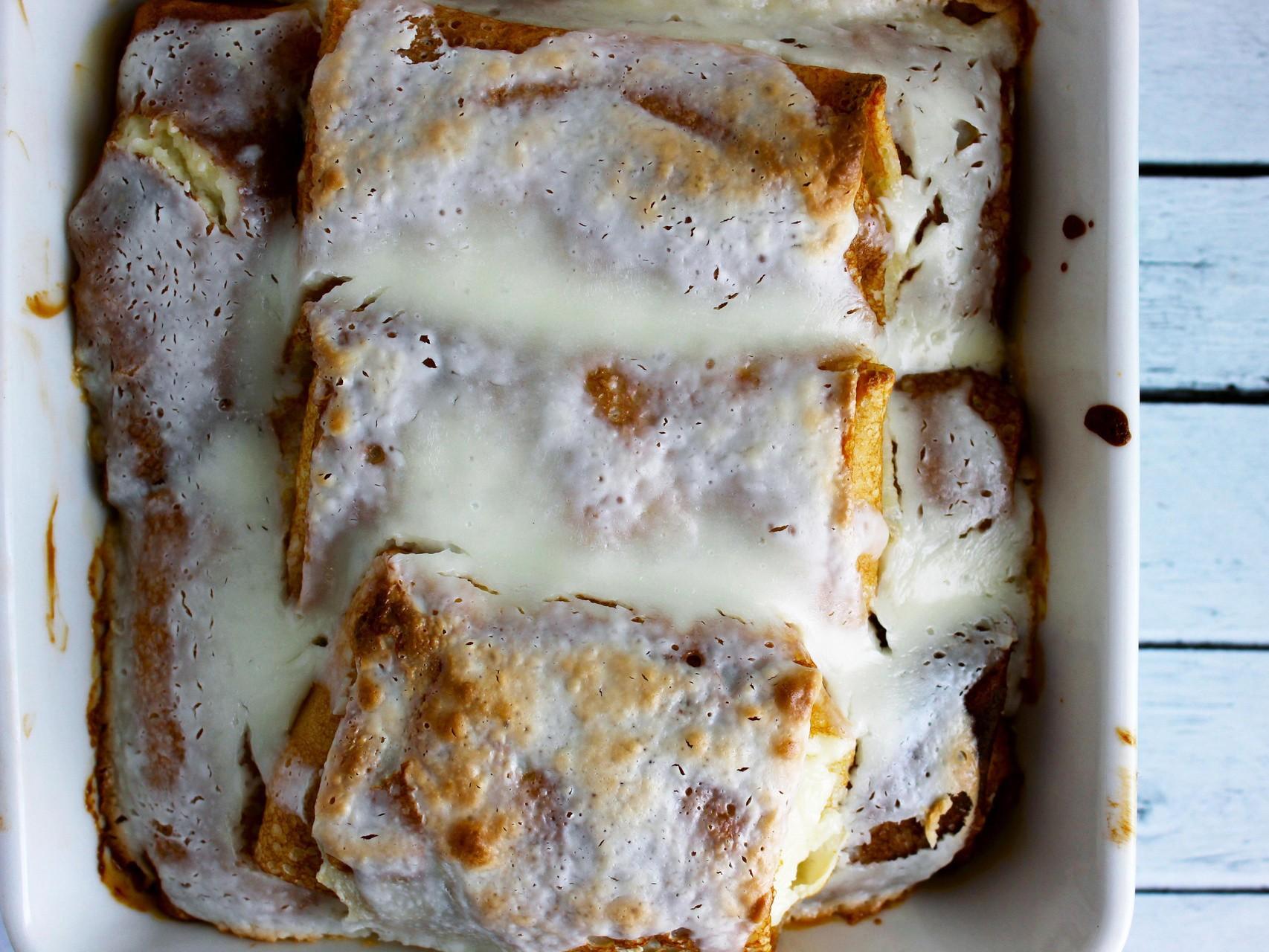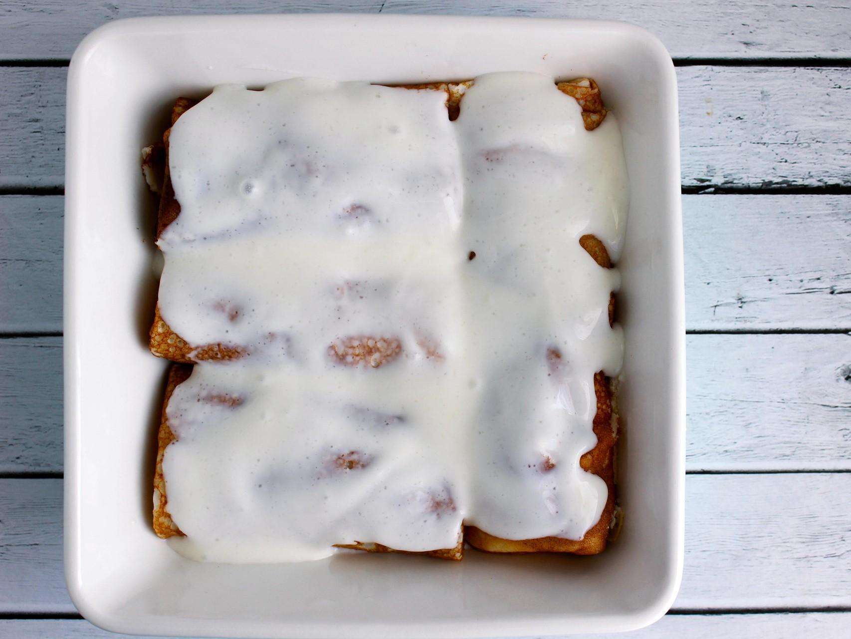 На наш взгляд, этот вариант оказался самым эффектным, ведь повторяет не только начинку, но и даже способ приготовления «Синнабонов» — готовые блины следует запекать в духовке вместе с кремом (читайте также: Булочки синнабон с корицей: шведский десерт, который тает во рту).