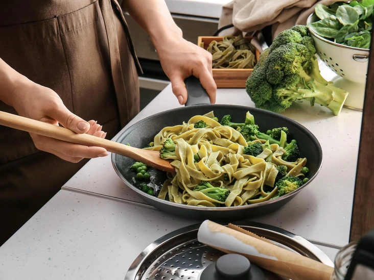Например, из овощей. Особенно популярны макароны из кабачка, но можно сделать из моркови и тыквы. Нарежьте их стружкой с помощью овощечистки и обжарьте на сковороде с соусом пару минут.