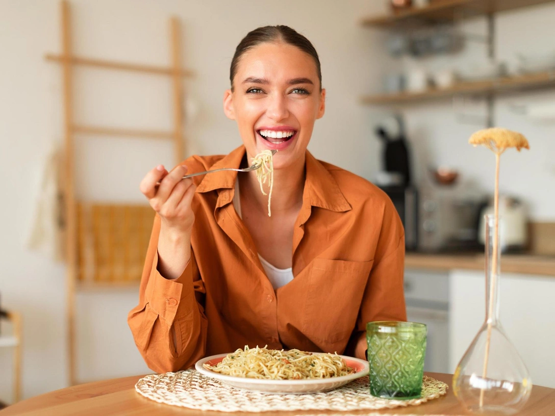 Главный секрет сытного блюда — это наличие в нем белка. Вы можете добавить к макаронам запеченное, вареное или обжаренное куриное филе, обжаренные креветки или фрикадельки из нежирного мяса или вегетарианские. Так вы сможете съесть совсем немного макарон, но утолить голод надолго.